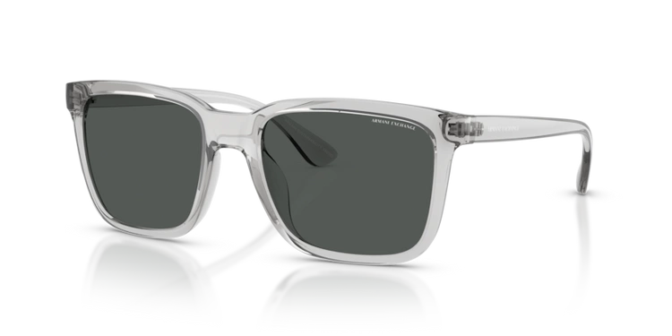 Eleganckie okulary przeciwsłoneczne Armani Exchange AX 4112SU w kolorze połyskliwego przezroczystego szarego